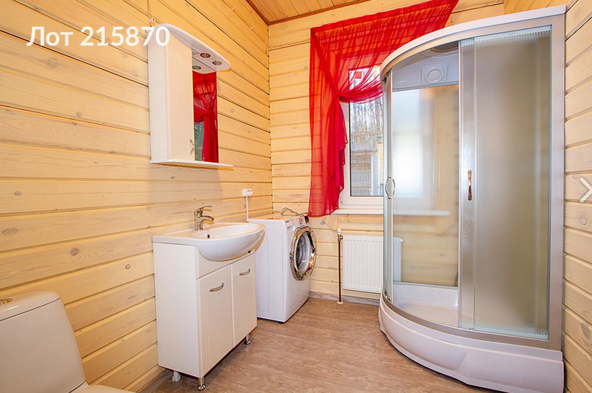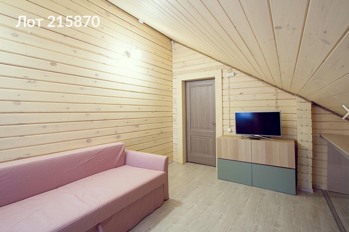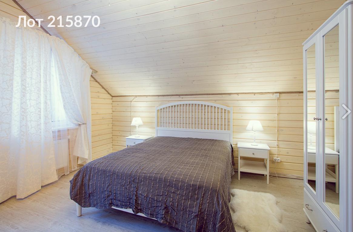Лот № 215870 Прекрасный загородный дом в охраняемом поселке "Заря", расположенном в живописной деревне Большаково на территории Московской области. Изысканный дом выполнен из северного леса. На территории поселка площадью 5 гектар имеется зона отдыха с баней, домиком-барбекю, прогулочными зонами и детской площадкой, все это только для проживающих . В доме имеется все необходимое для комфортного проживания - просторная кухня с бытовой техникой, уютная гостиная с мягкой мебелью, несколько уютных спален, санузлы с душевой кабиной и ванной. Индивидуальная система водоочистки. Поселок "Заря" предлагает высокий уровень безопасности - круглосуточная охрана, сигнализация в каждом доме, видео-наблюдение. Рядом с поселком есть частная школа "Светлые горы" , а также продуктовый магазин, теннисный корт. Недалеко торговые центры "Отрада", "ОБИ", "ОКЕЙ". Удобная транспортная доступность - всего 10 минут на автомобиле до станции метро Пятницкое шоссе, ходит общественный транспорт. Этот загородный дом идеально подойдет для постоянного проживания с семьей. 1 этаж: прихожая с гардеробом и большим зеркалом; просторная кухня (с плитой, духовкой, вытяжкой, посудомоечной машиной); гостиная (с мягкой мебелью из натуральной кожи и жк-телевизором); гостевая спальня (с мебелью и жк-телевизором); санузел с душевой кабиной; бойлерная с индивидуальной системой водоочистки. 2 этаж: хозяйская спальня с большой кроватью и мебелью; спальня с кабинетом и большим балконом; просторный санузел с ванной.